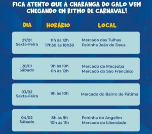Vai ter bailinho nas feirinhas do João de Deus, Tulhas, Macaúba, bairro de Fátima, Angelina e Liberdade.