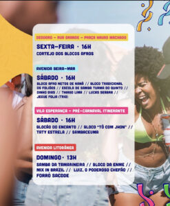 A programação do dia conta com blocos tradicionais, como o Bloco Encanto e o Jegue Folia.