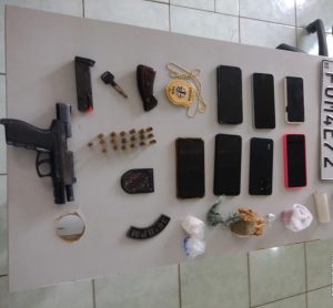 Durante o cumprimento dos mandados de busca, as equipes policiais apreenderam entorpecentes, uma arma de fogo, munições e uma motocicleta, possivelmente a mesma utilizada na prática do crime de latrocínio.